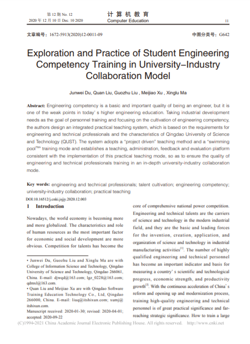 31、教研论文--Exploration and Practice of Student Engineering Competency Training in University-Industry Collaboration Modelust-in-Time-Teaching in Software Engineering