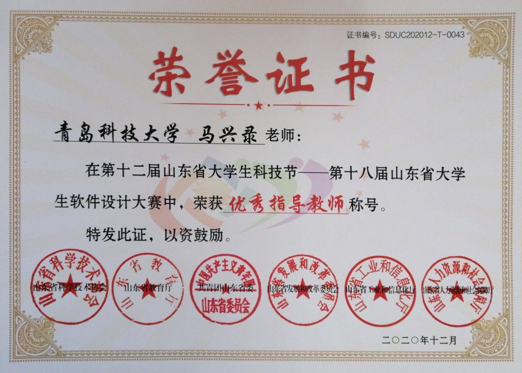 41、教师获奖--山东省大学生软件设计大赛优秀指导教师