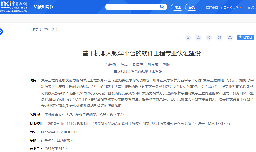 27、教研论文--基于机器人教学平台的软件工程专业认证建设