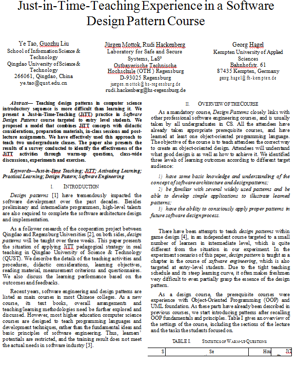 23、教研论文--Just-in-Time-Teaching Experience in a Software Design Pattern Course