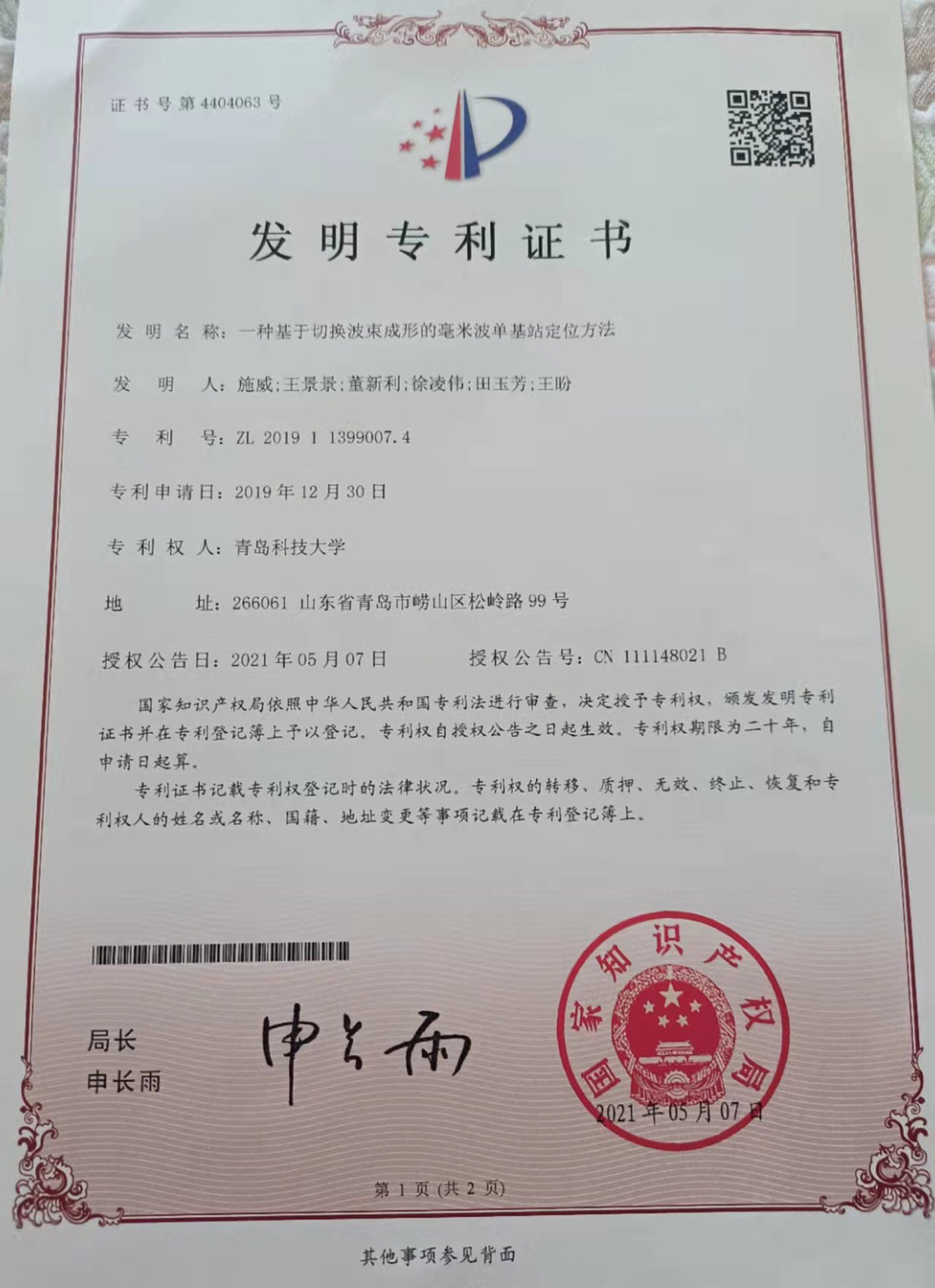 34、教师获奖--基于毫米波的高精度定位与高效可靠通信关键技术及应用(山东省科技进步二等奖)