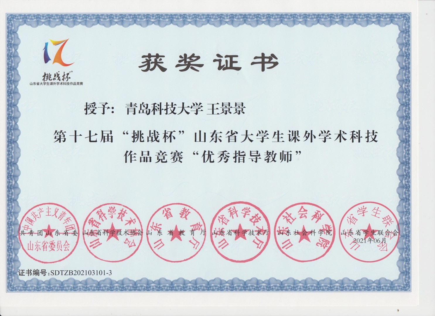 42、教师获奖--第十七届挑战杯山东省大学生课外学术科技作品竞赛优秀指导教师