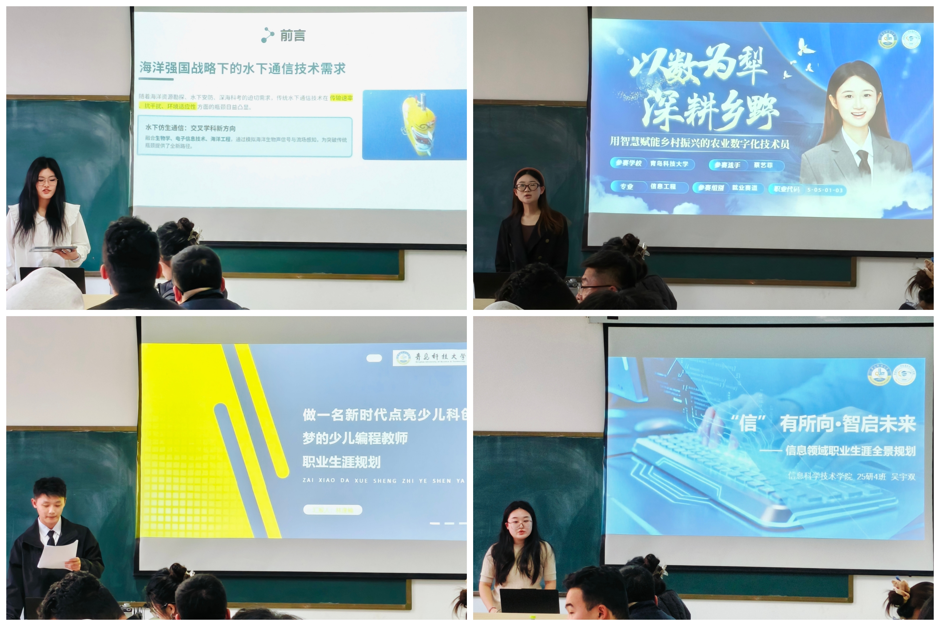 评委团从规划科学性、路径可行性、表达感染力等多个维度对选手汇报进行综合打分。最终成长赛道王杰琪获一等奖,刘培迪、王歆妍获二等奖,范雨铭、王馨晨、路宝生获三等奖,景欢畅、侯嘉楠、范晨儒获优秀奖;就业赛道蔡艺菲获一等奖,张惊蕊、周楠获二等奖,林逢楠、吴宇双、公烁获三等奖,张英杭、程宇露获优秀奖。在全场师生的热烈掌声中,评委团成员依次为获奖选手颁发荣誉证书与奖品。