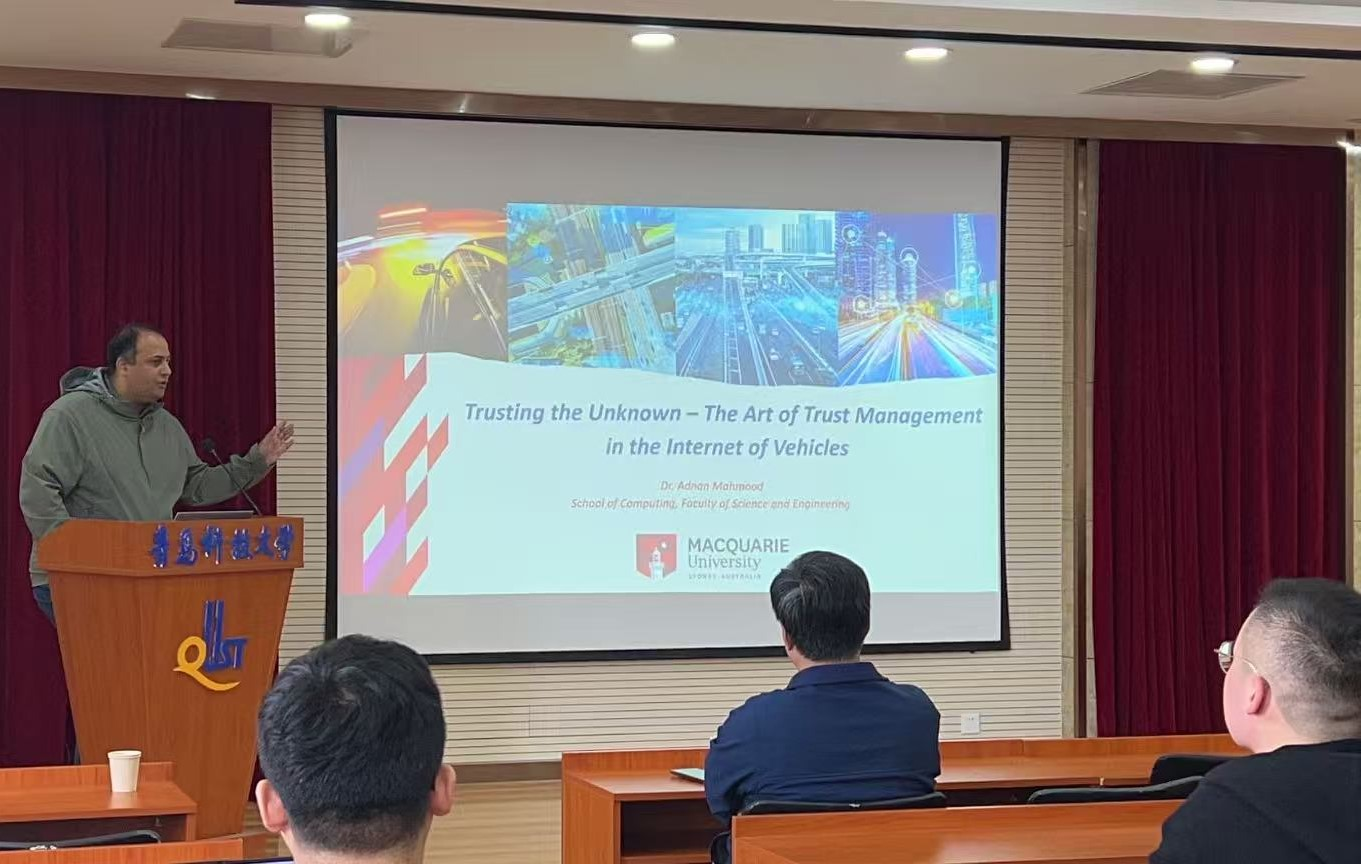 2024年4月3日,学院邀请澳大利亚麦考瑞大学Mahmood博士为学院师生作题为“信任未知——车联网中的信任管理艺术”的学术报告,并就相关前沿问题进行了深入探讨。报告由学院副院长陶冶教授主持,学院30余名师生参加。